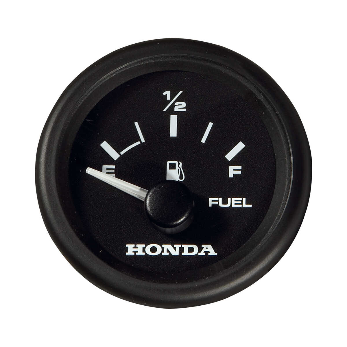 Honda brandstofmeter met zwarte rand en zwarte wijzerplaat.